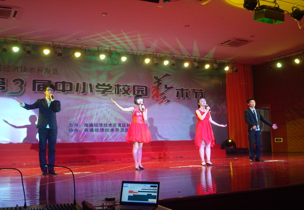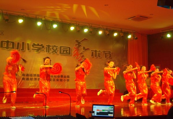 5月31日上午,开发区第三届校园艺术节在实验小学东校区成功开演。我校有三个节目成功进入最后的展演,分别是:大合唱《唱支山歌给党听》、《走向复兴》,群舞《山丹丹花开红艳艳》和配乐诗朗诵《祖国,我的母亲》。节目的成功展演,是我校实施素质教育的一个真实写照,同时也得到了南通教育局和开发区社会事业局的肯定与赞扬。