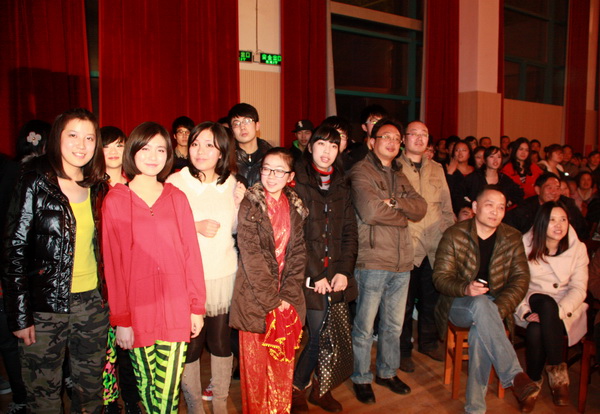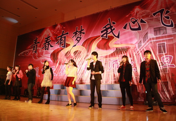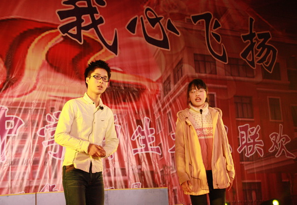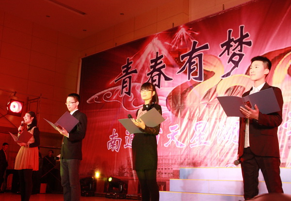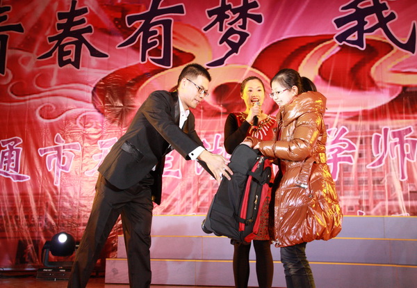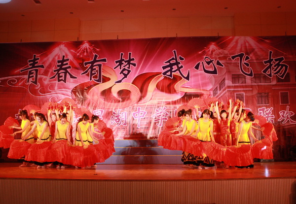 我校举行“辞旧迎新”师生联欢会 联欢会上,节目形式多样,内容丰富;表演精彩纷呈,高潮迭起。歌声唱出了对未来生活的美好向往,舞蹈展示了天中学子的青春风采;相声、小品幽默诙谐,令人捧腹不止;魔术表演雾里看花,令人啧啧称奇;舞台剧真实生动,富有创意,让人回味。最引人注目的是一群学生跳起了时下最流行的舞蹈《江南Style》,马式舞步和深具感染力的音乐节奏,让全场都为之疯狂,赢来如雷掌声。晚会每一个节目都演绎着天中师生永不停息、昂首向上、追求卓越的精神风貌。 节目中间还穿插了各个奖项的抽奖环节,近百名师生有幸获得了学校提供的价值一万余元的各类奖品。抽奖前,会场几乎鸦雀无声;抽奖后,当获奖得主一经主持人宣布,会场顿时欢声四起。 150分钟的演出中,回荡的歌声,激情的表演,欢快的气氛,热烈的掌声,驱走了冬日的严寒,呈现了天中的热情。整个联欢会始终洋溢着喜庆、热闹、和谐的氛围。