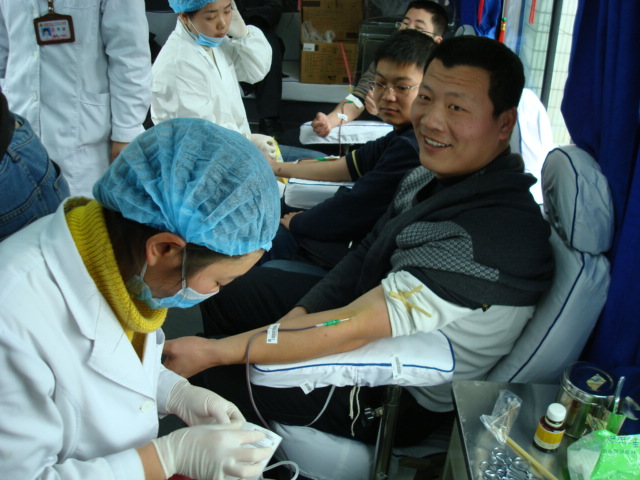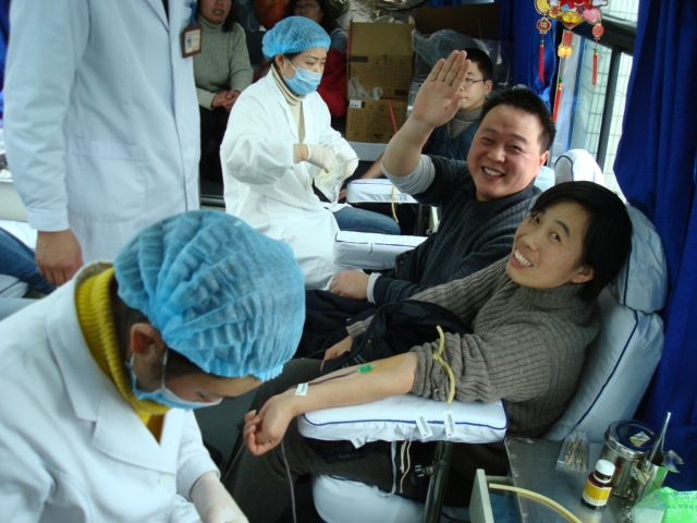 无偿献血,无尚光荣。今天尽管天气寒冷,但我校十余位教师仍然以一腔热情前往设在开发区管委会大楼前的“流动车采血点”无偿献血。据初步统计,我校朱琥、陈晓端已无偿献血4次,张丹无偿献血3次,邱小军、王先宏夫妇已一起两次无偿献血。现将今天献血的教工名单公布如下,以示对他们义举的表彰: 管仲贤、曹俊飞、羌名君、冒素琴、凌 严、唐有祥、周铭祥、张小飞、王仁泉、王 东、陈晓端、朱 琥、王先宏、邱小军。