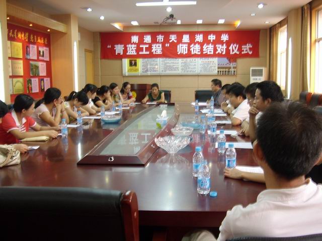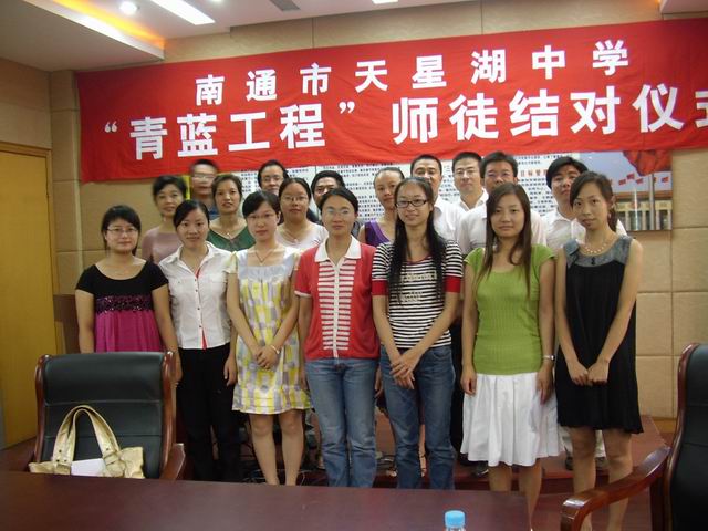 9月11日下午,天星湖中学教科室、工会组织了“青蓝工程”师徒结对活动,许馨月、孙敏、何胜男、顾潼等八位新教师与宋建平、徐东、谢建平、郁烨等教师结为师徒。