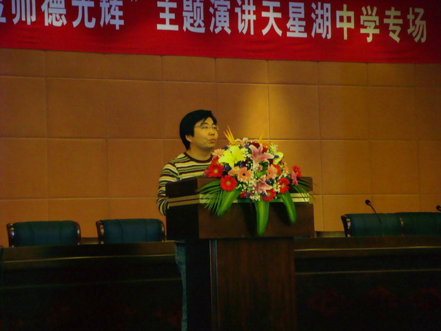 12月5日,开发区“学习英雄教师,彰显师德光辉”主题巡回演讲在天星湖中学新落成的报告大厅举行。 比赛中,八位老师围绕主题结合各校的实际和自身的情况,诉说对英雄教师的崇敬之情,畅谈自己的学习体会,表达自己学习的决心。他们感人至深、激人奋进的演讲深深打动了所有的听众。 精彩而庄重的演讲,不仅使全体教师感受到了演讲者的风采,更感受了一次深刻的洗礼和升华,正如徐新民校长在总结时所说的那样,通过这次演讲,我们需要达到提高师德水平、用实际行动去诠释人民教师这一光荣而伟大的社会角色的目的,弘扬正气,树立典型,在全校形成敬业爱生、育人奉献、和谐共进的良好风气,为创建文明和谐、健康向上的校园文化而努力。