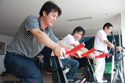 我校投资10万余元兴建的一流的健身房近日已投入使用,其中有跑步机、健腹板、按摩椅、动感单车、运动冲浪器、磁控椭圆机等健身设备。 在充满挑战和刺激气氛的健身房内,老师们的身体和意志都得到了锻炼和考验,紧张的工作节奏在此得到了放松。
