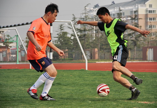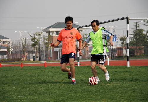 西亭中学教工足球队来校友谊赛 据了解,西亭中学和我们天星湖中学的老师都有共同的爱好,平时在紧张的教学工作之余,都会在学校的绿茵场上踢踢足球来锻炼身体,愉悦心情。现在,两校的足球爱好者利用周末时间,相约走到了一起,借以交流球艺,联络感情,增进友谊。