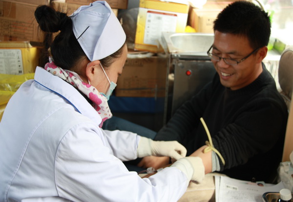 冬日献热血 冬日,室外寒风凛冽,但在位于开发区乐天玛特前的爱心献血车内却是温暖如春,来自天星湖中学的21位教师在履行完各种手续后由专职医生从自己的体内抽出了300—400毫升的鲜血,为急需用血者献出了一片爱心。 义务献血在天星湖中学有着优良的传统,每年都有几十位教师义务献血,他们说,献血不但为患者送去了希望,同时适量的献血对自己的身体也有好处。10来位老师已经有了3次以上的献血经历。