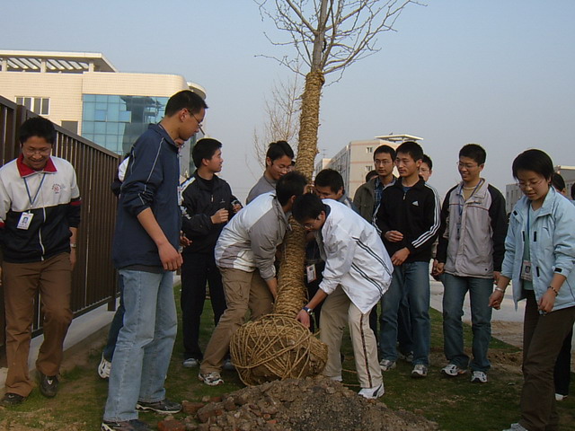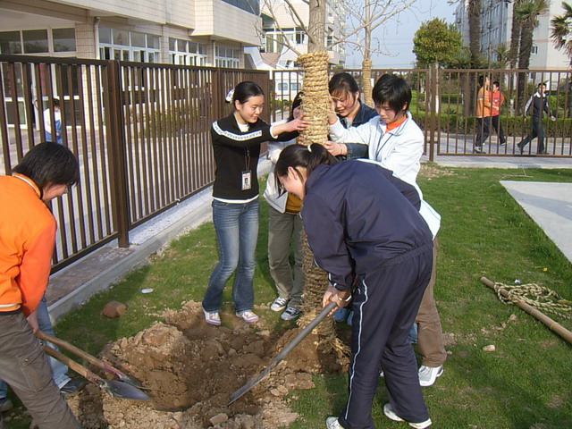 天星湖中学初三、高三毕业年级积极响应学生会发起的“为母校种下真情树,为母校留下一片绿”的植树倡仪,纷纷投入到植树活动中,活动图片如下: