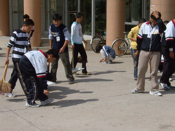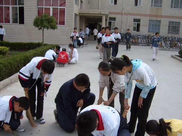 10月12日星湖志愿者校园服务队的同学利用午休时间,对粘在学校主干道上的口香糖进行了专项清理,成效显著。