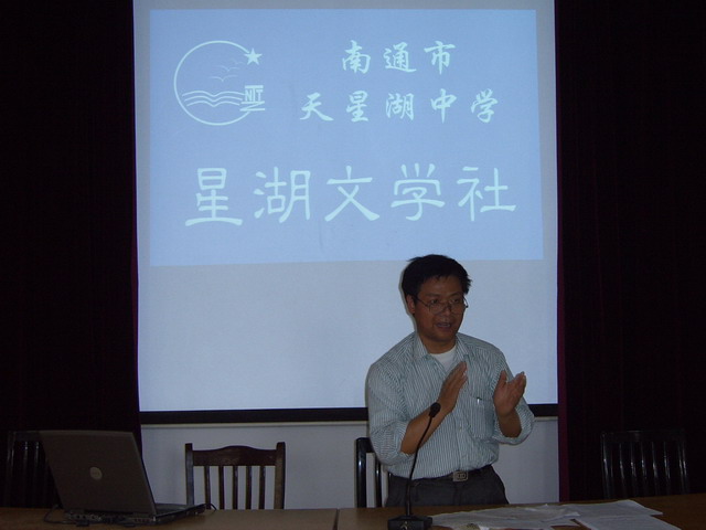 "星湖文学社"是在校长室和团委领导下由思想进步,热爱生活,爱好文学,学有所长的在校学生自愿参加组成文学兴趣活动的组织。 5月23日中午,在第二阶梯教室召开了"星湖文学社"筹备会议,来自全校各班级的文学爱好者参加了此次会议,会议期间,常务指导沈主任和指导老师代表蒋老师做了精彩发言,学生对文学社的成立非常赞成,参与的积极性非常之高. |