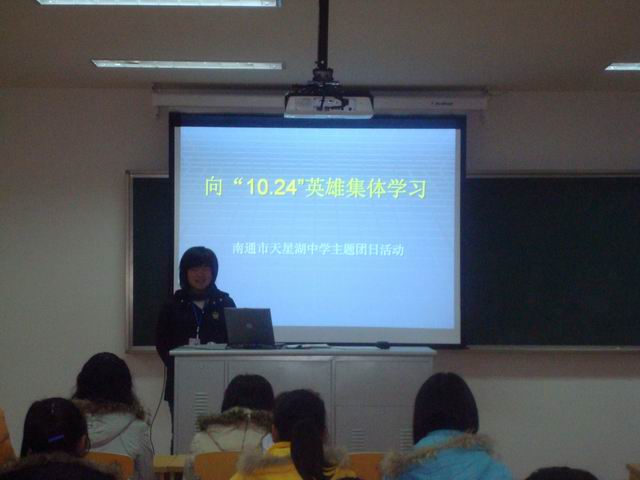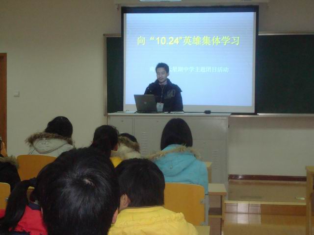 为进一步落实团中央关于向“10.24”大学生英雄群体学习的号召,弘扬临危不惧、见义勇为的传统美德, 12月14日,天星湖中学团委在学校多功能教室召开了以“向‘10.24’英雄集体学习”为主题的团日活动。全校各团支部书记、班长、学生会、广播站成员参加了此次活动。