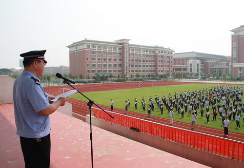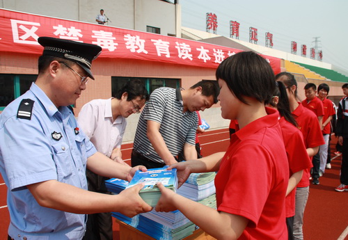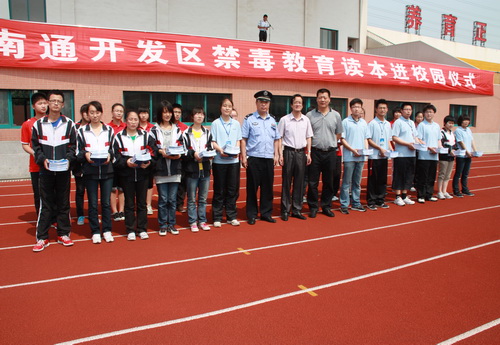 毒品预防教育活动之三--南通开发区禁毒办主任来校发放禁毒教育读本