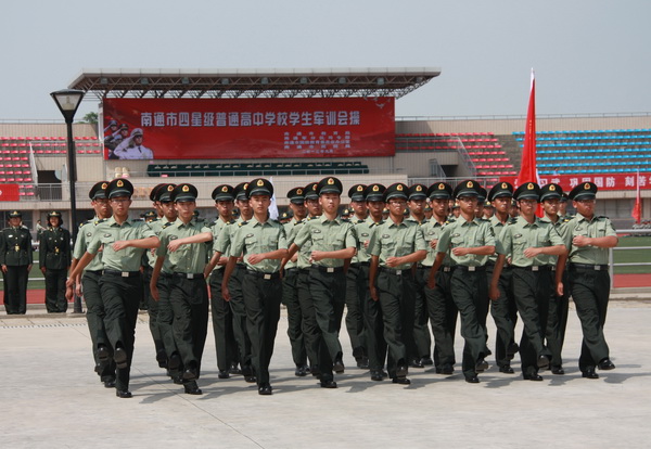 9月16日,我校首次参加了三年一次的南通市四星级普通高中学生军训会操。 南通市四星级普通高中学生军训会操由市教育局、南通军分区司令部、市民防局、市国防教育委员会办公室主办,旨在加强四星级高中学校的国防教育和军事训练,检验学校军事训练成果,展示四星级高中学校学生风采,促进学校学风、校风的进一步优化。 我们天星湖中学自跨入四星级普通高中行列后第一次参加军训会操。尽管我们没有军训会操的经验,但我们本着虚心学习、积极参与的精神,努力操练着包括分列式检阅、战斗精神队列歌曲演唱、单个军人队列动作、应急防护技能比武等参赛项目。 在短短一周的时间里,同学们严格训练,严格要求,“苦”并“快乐”着。最终在与全市18所四星级高中近千名高一新生的比拼中,我校学生并不怯场,他们以整齐的队列、矫健的步伐、嘹亮的军歌、昂扬的气势,充分展示了年轻的四星级普通高中——天星湖中学的风采,取得了不俗的成绩。