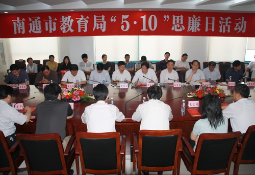 南通市教育局510思廉日活动在我校举行 今天是南通市第四个“510思廉日”。上午,南通市教育局机关领导在参观了南通市廉政教育基地之后,来到我们天星湖中学,举行了“510思廉日”活动。 活动开始,先由南通开发区社会事业局黄洪生局长、天星湖中学徐新民校长分别介绍了开发区教育系统和天星湖中学开展廉政教育的具体做法及成功经验;然后南通市教育局纪工委张建跃书记、监察室冯斌主任通报了2010年以来南通市教育系统廉政建设的情况,提出了进一步加强廉政建设的希望和要求。最后,南通市教育局党工委黄建辉书记作了总结性发言,他强调:作为机关领导,要加强作风建设,加强队伍建设,率先垂范,为人表率;作为教育系统,要加强行风建设,加强师德建设,深入开展反腐倡廉宣传教育,着力营造以廉为荣、以贪为耻的良好社会氛围,加快形成拒腐防变教育的长效机制,为教育之乡再创辉煌。 南通开发区社会事业局有关领导也一并参加了“思廉日”活动。