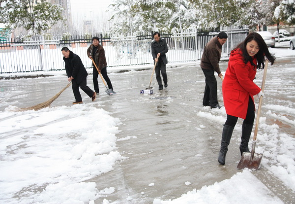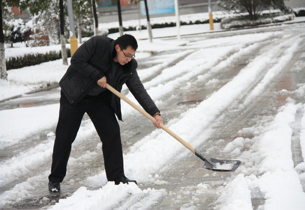 风雪校园路 可敬扫雪人