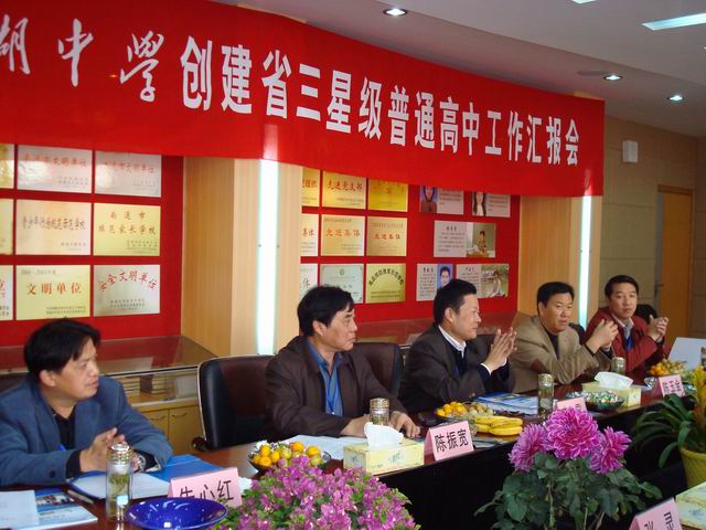 10月29上午8点在南通市天星湖中学乐英楼会议室,学校党总支书记、校长曹钤向评估验收组专家和南通市教育局、开发区社会事业局领导作创建三星级普通高中工作情况的工作汇报。 |