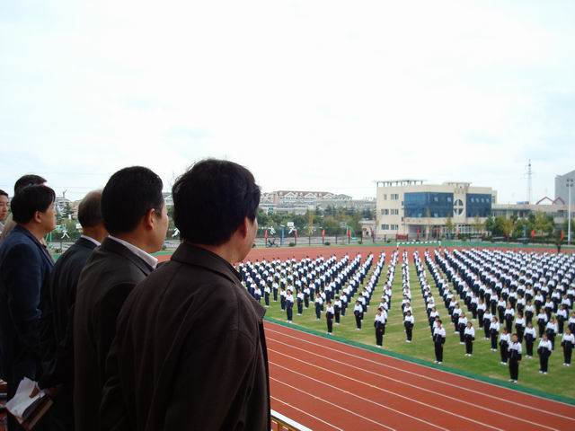 10月29日上午9:25分,随着“一、二、三、四”的嘹亮口号声,全校两千余名学生以班级方队跑步走向运动场,接受省评估院专家的检阅。在优美活泼的音乐声中,同学们节拍到位,动作整齐,大家力求以完美、青春的整体形象展现在评估专家组面前。