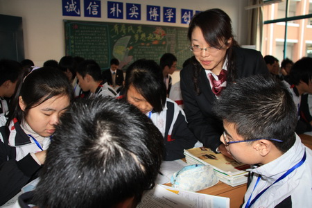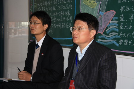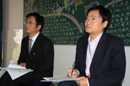 25日下午,评估组专家又投入了紧张的连听两节随堂课的评估工作。听课过程中,专家们边仔细听课,边认真记录,有时还悄悄地走近学生,听他们的即席讨论,看他们的当堂作业和电脑构图。 今天被听课的老师有张小丽(地理)、刘宏兵(政治)、秦秋梅(化学)、严月萍(英语)、张丽华(信息技术)、施惠丽(数学)、李红英(通用技术)等七位。 明天上午,还将有8位老师被随机抽听随堂课。