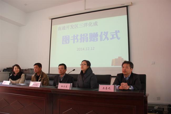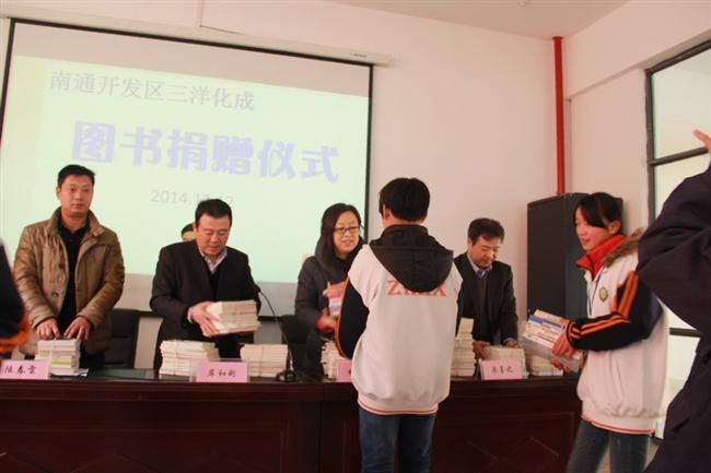 12月12日下午,三洋化成精细化学品(南通)有限公司向竹行中学捐赠图书仪式在贤行楼底楼会议室举行。三洋化成总经理岸和利、副总经理奥喜之、区工会领导和校长室成员参加了捐赠仪式。 捐赠仪式由何美红副校长主持,她代表学校对三洋化成公司爱心助学深表谢意和由衷的敬意。 三洋化成有限公司总经理岸和利表示,让更多学生读到好书是企业义不容辞的责任。随后,三洋化成公司向我校捐赠了价值一万元的图书,初二1班学生代表全校师生接受了捐赠。 陆春雷副校长对三洋化成公司的爱心奉献表达了最诚挚的谢意,他衷心希望接受捐赠的全体同学,要铭记各位领导的深情关爱和期望,以此为动力,刻苦学习,回报社会。 最后,三洋化成公司领导、区工会领导与全体受赠学生合影留念。